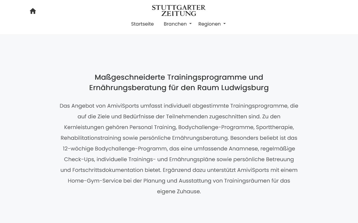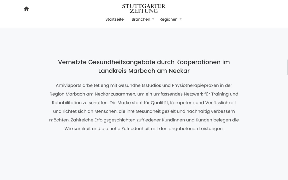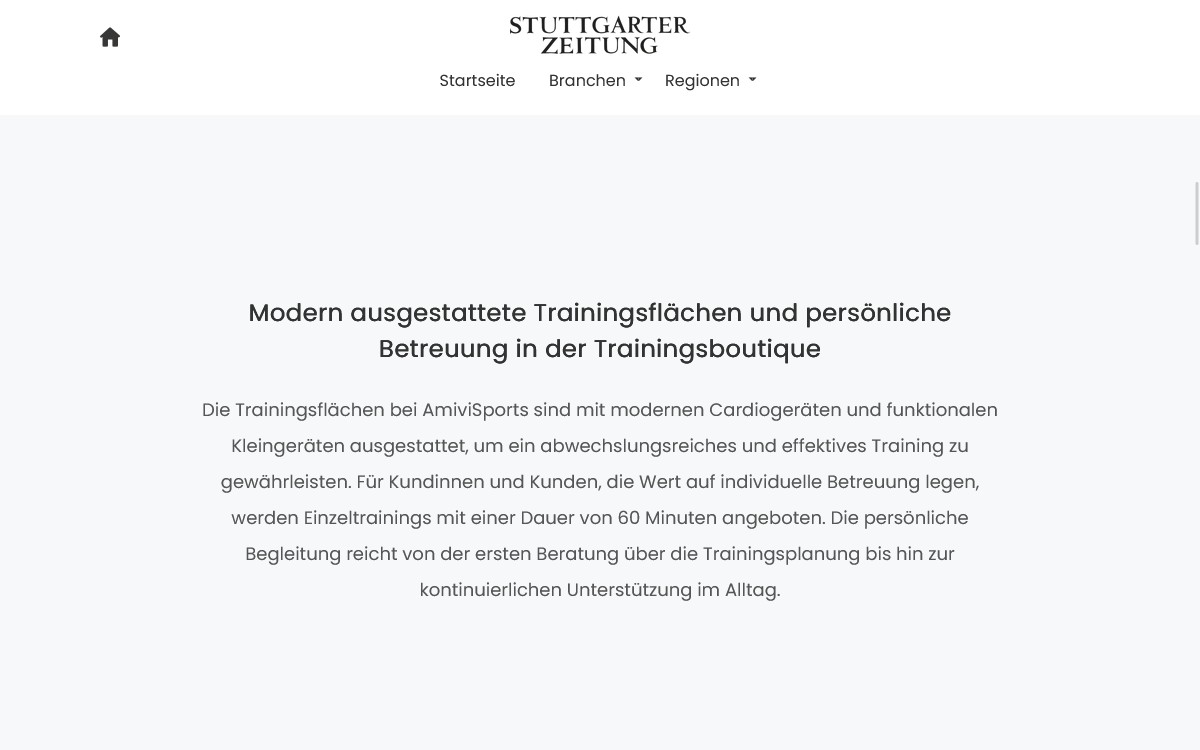 Informativer Bericht in der Stuttgarter Zeitung über AmiviSports. Schaue dir den ganzen Artikel auf folgender Seite an: